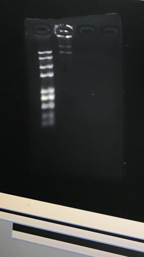 是这样子的,我的粉末质粒溶解完是76.3ng/ul,分别稀释了50倍和100倍P不出来,下面是质粒跑的电泳也没问题啊……他们都说点突这个特别好P,随便一P就P出来了,我简直崩溃了……不知道问题在哪,引物出了这么明显的二聚体,应该也没降解吧…… 发自小木虫IOS客户端 |