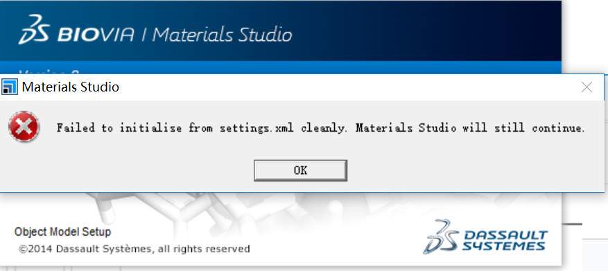 我在win10系统下安装Materials studio8.0或2017版本后,打开时出现如图所示的问题。是xml解析器的问题还是我电脑的系统与MS不兼容?