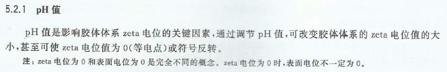 pH只改变具有酸碱性的颗粒的zeta电势,如氧化物、氢氧化物等,而对于一些二元盐类,如AgI,pH几乎没有影响。