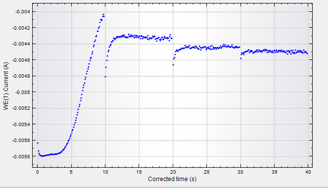想做图1 那样的暂态计时电流曲线,电势控制应该是图2 那样的,我用计时电流法做的曲线是图3 所示,在设置好的时间下电势阶跃到设好的电势,但是图形完全不一样。想请教一下CTTs曲线是怎么做的,是像我这样做出来,然后把每个电势下的数据分别拿出来,把起止时间设为0放在同一坐标作图,还是先做完一个电势,然后停止测试;再设好另一个电势,做完后再停止测试,然后再做呢?还是用其它方法做的?谢谢各位了。 图1 文献曲线.png 图2 电视控制波形图.png 图3 计时电流法.png@langzhizhou@Gamry-电化学@Gamry-电化学 |