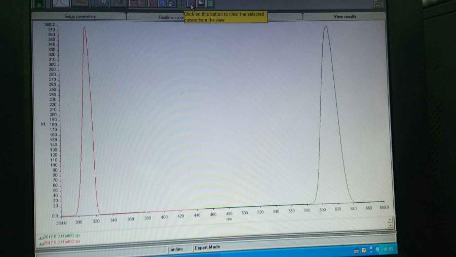 如图,稀土Eu有机配合物荧光激发发射峰长这样,请问有毛病吗:第一次接触Eu 不太明白?拜托了各位虫友