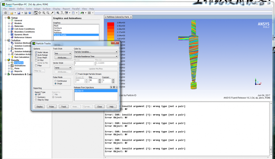 有没有做过旋风除尘器气固两相模拟的大神?为什么我用DPM模型模拟完后,点击Dispaly Particle Tracks...什么都不显示,是什么问题呢?刚接触搞得云里雾里的,是在搞不懂?![]() ![]() ![]() 捕获1111.PNG |
