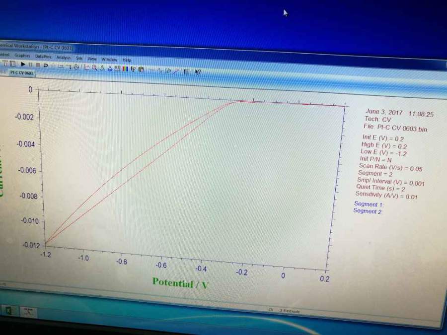 突然被换课题,从来没有做过ORR,用的商业催化剂先试一下LSV和CV结果扫出来的和文献一点都不一样,有谁可以帮我一下吗?非常感谢了。 下图是我用华辰CHI660E测的,这是做ORR的仪器。 用的溶剂是0.1M高氯酸 和0.1KOH都是下图的曲线,都出不来。 配比是:催化剂10mg,乙醇 350ul ,5%的nafion 95ul,超声30min 发自小木虫Android客户端 |