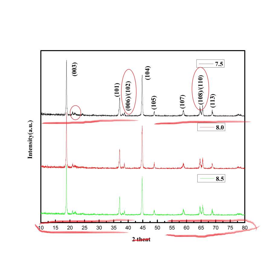 各位前辈和同行: 我这里有问题求助一下,1. 第一个图是我做的富锂正极材料的XRD图;2. 第二个图我是的充放电图,但是明显没有富锂的特征,不知道是不是我的锂系数并没有大于1的缘故;3. 第三个图是我循环100次后,再测试的CV,之前忘记测了,这个CV符合富锂特征么? XRD.jpg 充放电曲线.jpg CV.jpg |