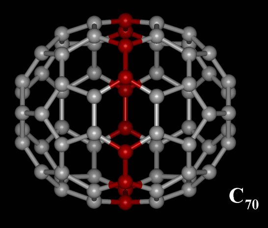 C70 van der Waals diameter 以下是C60的数据: The van der Waals diameter of a C60 molecule is about 1.1 nanometers (nm). The nucleus to nucleus diameter of a C60 molecule is about 0.71 nm. Fullerene_C70.png |