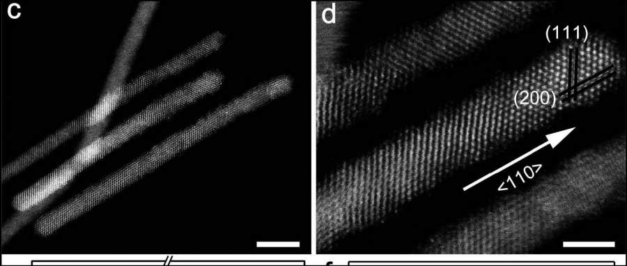 请问大家,由下面两张高分辨图,怎么看出纳米线的生长方向?谢谢!
