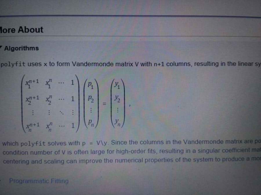 参考图中的方法,实际上多项式拟合就是解矩阵方程,慢慢研究