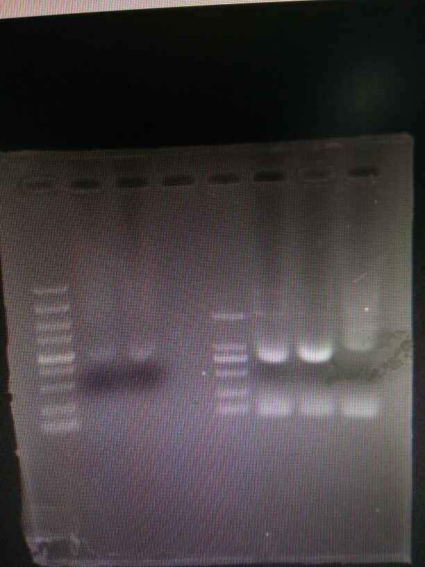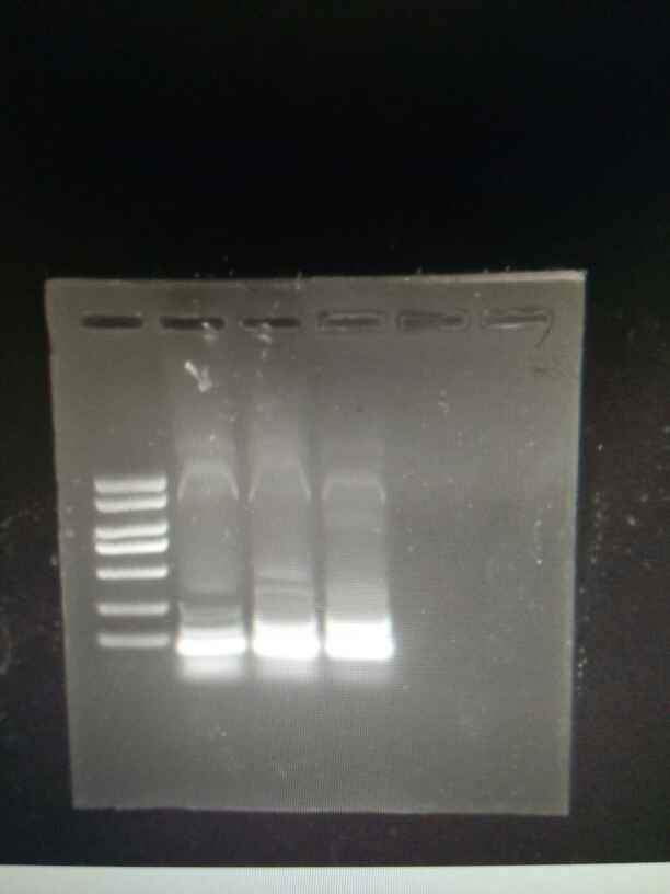 我在做DNA模板阔增,PCR我前次做成功了,为什么我这次就失败了呢?我都是按照一样的程序啊,只是把体系25ul换成了50ul,求解疑啊第一张是我跑失败的,第二张右边是我跑成功的,条带在800左右是成功的 发自小木虫Android客户端 |