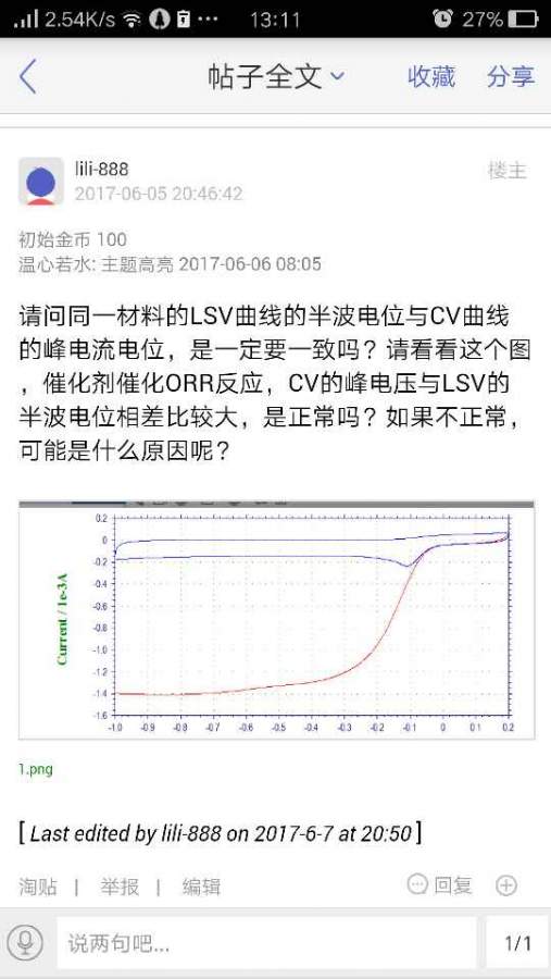 说得简单一点,cv和lsv实验可以是一样的,但是如果你样品的初始状态不一样,还是灰导致不一样的结果的