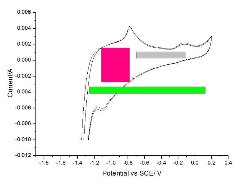 一看就是做的金属氧化物负极材料,电位区间可以到-1.3,到-1.4的时候虽然没有出现气泡,但曲线已经明显变形极化,而且1.3的时候氧化还原峰都出来了,所以是可以的,比容量可以计算的,用gcd曲线计算 发自小木虫IOS客户端 |