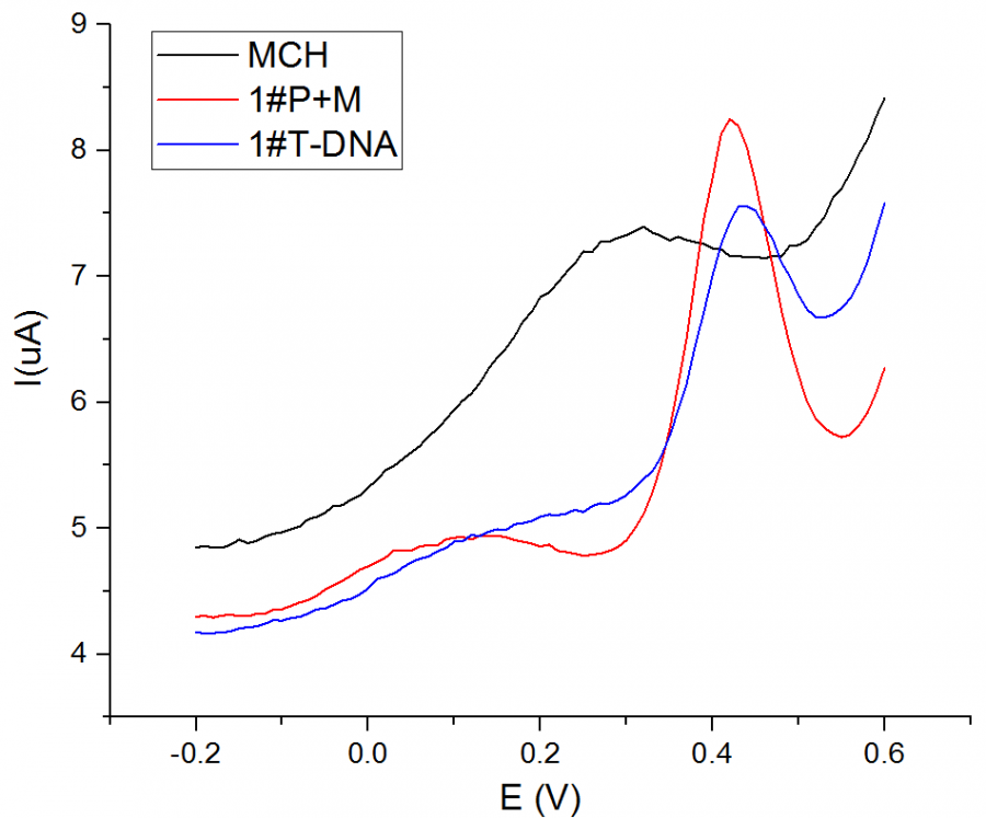 2.第二张图为金电极表面包被MCH和DNA探针(Fc)/MCH,文献中说ACV测试结果需要减去空白对照,从实验结果看空白对照应该只是指包被MCH的电 极扫描结果咯?