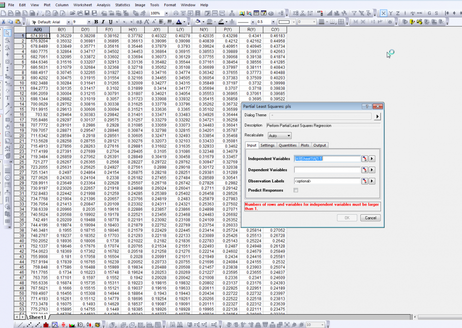 origin 2016 做偏最小二乘法(PLS)遇难题