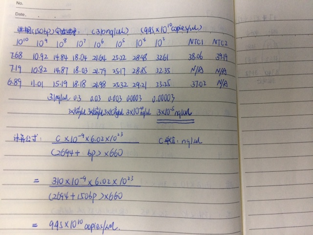 现在情况是这样的、我选取了6个点、去掉最高拷贝数两个点、得到的扩增效率勉强能行、但是我最低点对应的拷贝数9.95??10的3次方拷贝、我感觉我已经不是在做QPCR了、PCR都可以得到我的这个结果了、求大神指导 发自小木虫IOS客户端 |