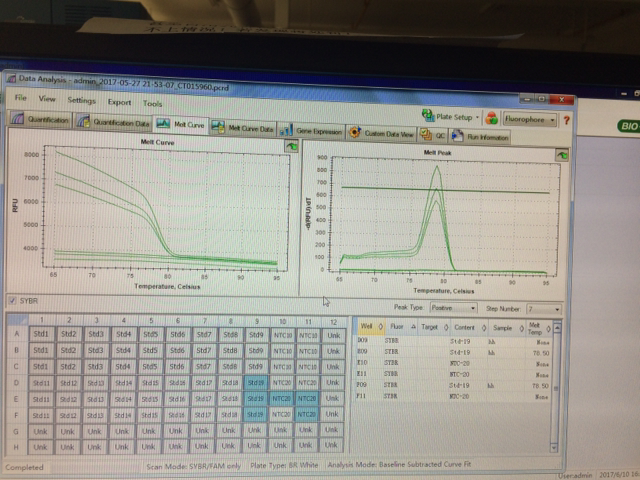 本人用的师姐的引物、引物都OK、体系也OK、换算的拷贝数也没问题、但是再高的灵敏度我实在做不下去了、我想请问一下、是否有引物不同做出来的灵敏度就不同这个说法、我目前只能做到9.95??10的3次方拷贝、目标片段150bp,用的18T载体、SYBR染料法做的、20ul 体系、文章中有做我这方面的人家PCR就可以灵敏度达到我这个级别、想想到最后我都做的啥啊、求大神指导、第二张图、上不去的溶解曲线分别是我的2次方拷贝和水、因为曲线上不去、所以这个值就没法要、其他的都还好、我的这个曲线都还可以、求指导啊 @biostar2009 发自小木虫IOS客户端 |