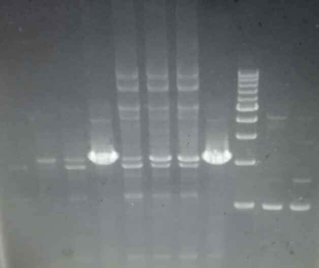 如图,4,8泳道为对照,跑的很好,没有非特异性扩增。但为何其他泳道都有多条非特异性扩增?如果是退火温度不合适,不应该全部都是非特异性扩增吗?请大神指教~