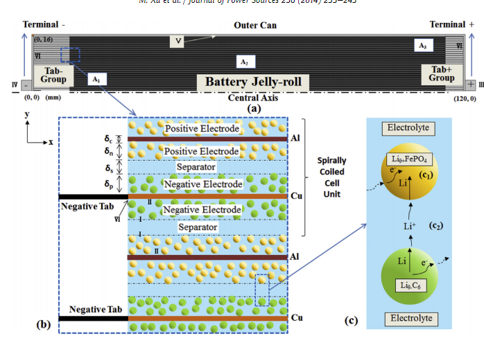 看了一篇文献,Two-dimensional electrochemicalethermal coupled modeling of cylindrical LiFePO4 batteries 对于建立的2D模型表示没看懂,想知道这个模型是把正负极和隔膜,集流体都表示在这个2D模型上,还是电化学的部分用的一维模型求解的?求大神指点 2D模型.png |