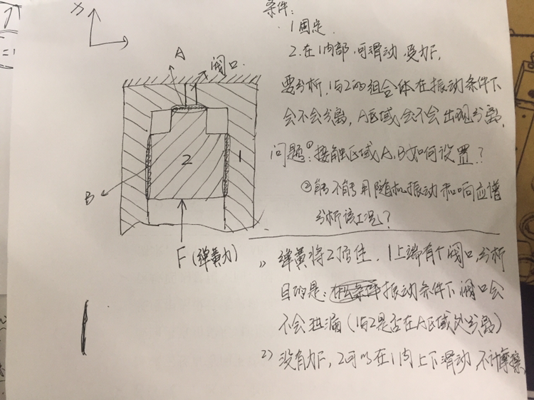 X向的随机载荷激励下1和2会不会分离,用workbench中的什么模块算?A区域接触是非线性的,用随机振动模块算不了,如果用瞬态动力学,这个试验条件改怎么加?或者还有什么方法没? @wuming524 发自小木虫IOS客户端 |