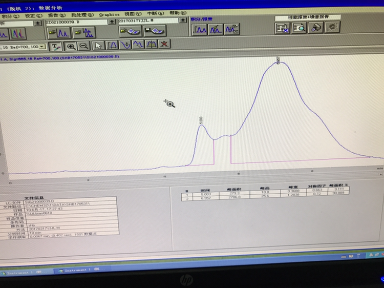 我跑出来的亚甲基蓝的峰很奇怪,用二极管跑的。能告诉我一下怎样调峰吗。我用的流动相是乙腈:乙酸铵=3:7。或者告诉我哪里出问题也行 发自小木虫IOS客户端 |