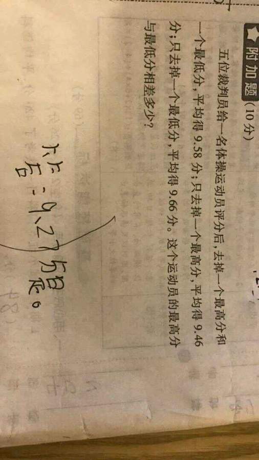 小孩子的话跟据9.46求最低分,9.66求最高分,然后相减