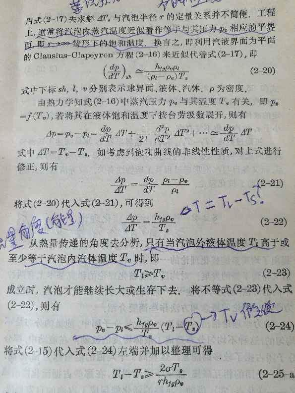谁能解释下,克克方程中的压差和温差为什么是书中的蒸汽压力减去液体压力和蒸汽温度减去饱和温度啊?克克方程不是表示从一个饱和状态到另一个饱和状态的系统压差与温差的变化率吗,这个系统对于沸腾来说,应该是整个系统的包括水和蒸汽的压力和温度变化啊? 发自小木虫Android客户端 |