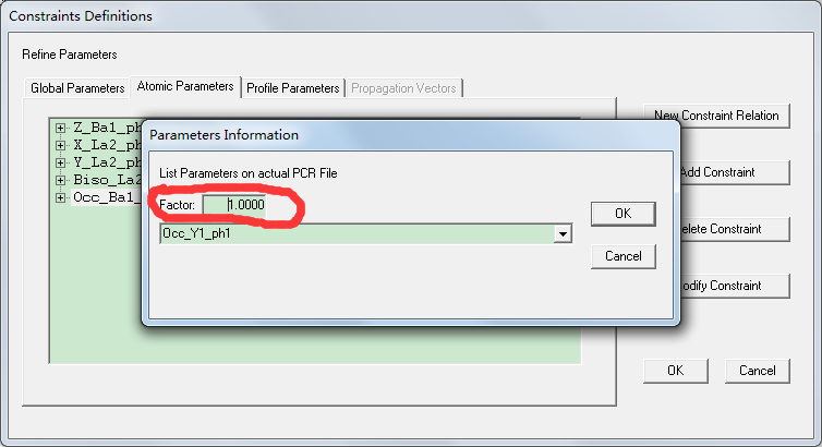 1、atomic parameters 中的Z_ BISO_ X_ Y_ 分别是什么意思,他们每项的factors是指什么,影响什么? 2、如果要替换模板中的某个原子,constrains应该怎么设置 3、如果要掺入其他原子,constrains应该怎么设置 123456.png |