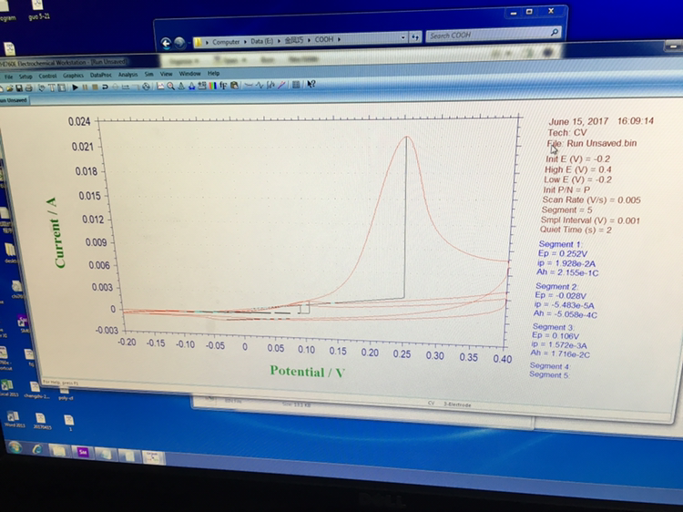 请问电化学沉积的氢氧化钴是什么颜色呀。我用多电位跃阶的方法沉积出来是天蓝色的。然后用3MKOH测它的电化学性能 放进去先变成深蓝色后变成粉红色 循环伏安测只能第一段有峰 然后变成黑色就没有峰了是怎么回事啊。 发自小木虫IOS客户端 |