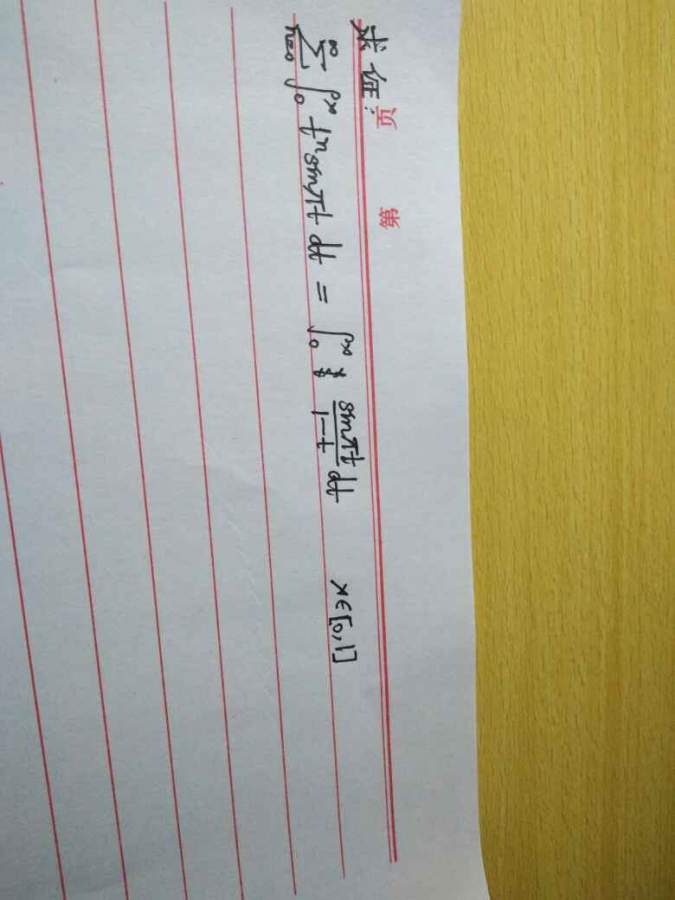 只要证明前一积分关于n是一致收敛的,这由t^n<=x^n<=1即可证明,之后交换求和与积分次序,变成关于t的无穷等比数列求和就得到后一结果了。