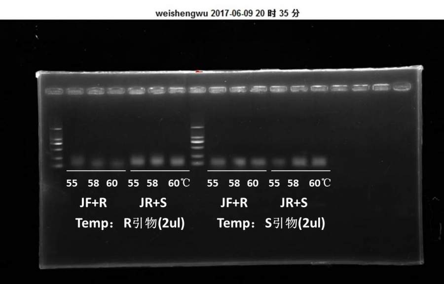 求交流: 最近在做链特异性PCR的实验,验证基因存在于RNA正反义链! 提取植物RNA后,分别用带接头的引物反转录成cDNA作为PCR的模板。分别用2*EasyTaq SuperMix和高保真酶(HiFi)这两种酶系进行PCR扩增目的基因。经凝胶电泳检测,均只有引物二聚体! 谢谢!有木有做相同实验的伙伴,一起交流啊! 模板单一 引物不同.jpg |