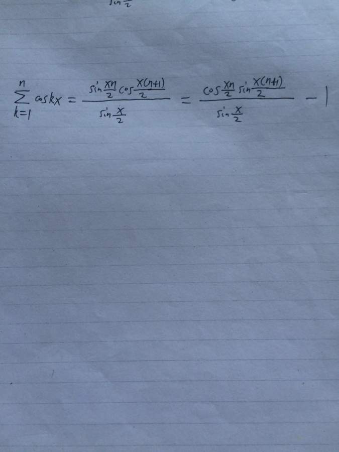 把和式写开,然后乘以sin(x/2), 利用三角函数的积化和差公式,再除以sin(x/2)