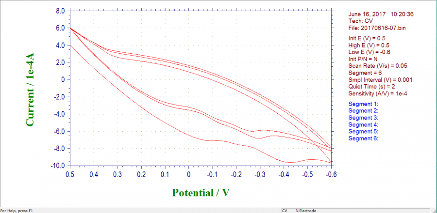请问丝网印刷的碳电极呈现扫铁氰化钾溶液的CV曲线的时候出现这种峰是什么情况啊?怎么分析丝网印刷碳浆电极可能出现的问题?我前面印了两次,三次的都是这种图。铁氰化钾溶液和参比电极我已经测试过了是好的! 05.png 07.png |
