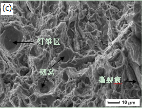 敢问各位大神,下图是7055铝合金的断口图,图中所标的纤维区是不是对的?它和韧窝有啥区别吗?(感觉就是比韧窝打了一点啊),如果是对的,那它是如何产生的呢? 在线等,跪拜。 7$`WCBP@[ZJV@AC~XF([6VC.png |