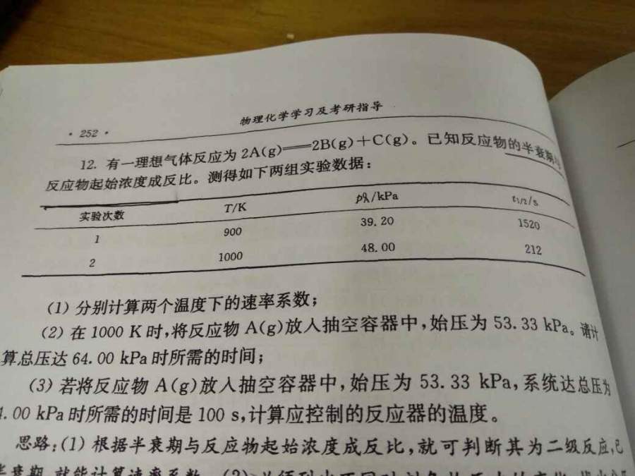 我想问问,这道题的第二问,求时间时,是应该除以2倍速率常数还是直接除以速率常数啊,答案给的是除以2倍的,但是我觉得很奇怪 发自小木虫Android客户端 |