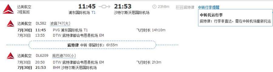 请问在底特律中转的联程票也需要重新托运行李吗?