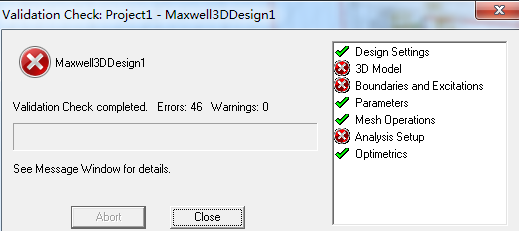 ANSYS MAXWELL 3D 静态磁场分析,到最后求解时发现3d model没成功,可是添加材料,激励源,求解域都弄好了,也有3d图,为什么一直是3d model前面有个红叉 不通过。求大神帮忙,万分感谢。 `OB9%ODRBVMTP5V`Q1OC%S4.png W65EB4K06Q(}B()8ZW3KDAH.png |