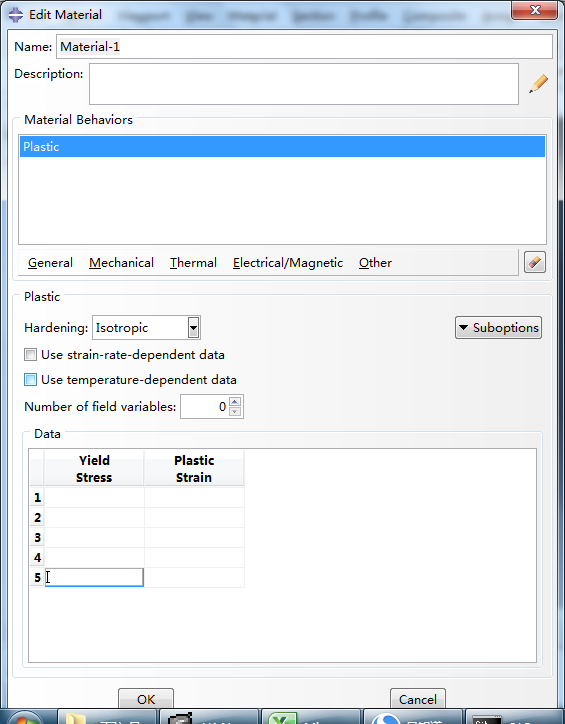 应变是对数应变,应力是柯西应力(真实应力)对应于初值是yield stress的屈服应变是0,然后下面的应力是你导出的,或者是实验数据,关于这一点,我不太确定,不过不是这些值,也没有其他stress可以让我输进去,更不解的是,这样把实验数据输进去,还要abaqus干什么 发自小木虫Android客户端 |