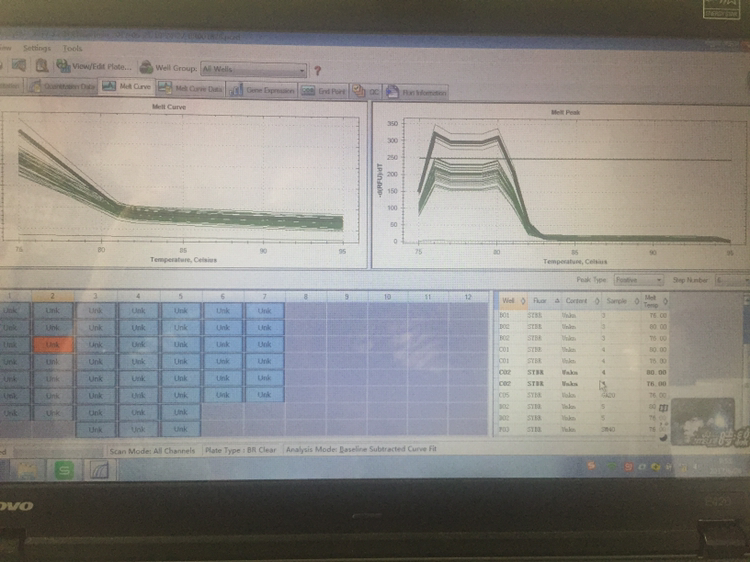 检测病毒DNA的表达量,用绝对荧光定量的方法,用质粒标准品梯度稀释做标准曲线。引物设计参考别人的,别人用该引物做出来的峰是单一的,没有问题,我提取的DNA也没有问题,退火温度59度,已经重复了好多次实验,熔接曲线都是这样。将PCR产物跑胶后发现只有一条带,也不是引物二聚体。不明白为什么这个熔解峰不是单一峰,求大神指点! 发自小木虫IOS客户端 |