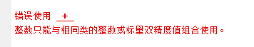 matlab错误使用+整数值能与相同类的整数或标量双精度值组合使用