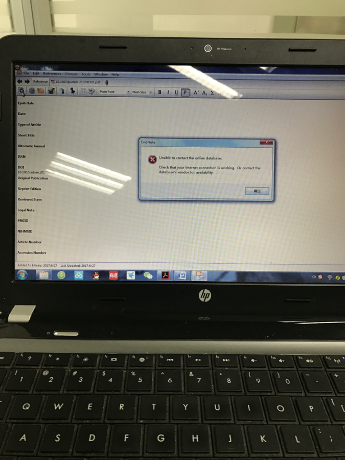 Endnote导入本地PDF,不出标题,作者等相信信息,于是找到文献的doi码,更新,出现如下问题,求支招!之前一直可以的