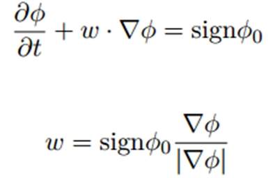 重新初始化方程如图2所示,对照UDS方程形式,认为对流项为w =sign phi0 *grad phi / |grad phi|