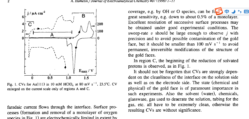 金电极扫描硫酸溶液,请问大神各个峰代表着什么? 已有3人参与