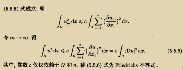 其次,根据庞加莱不等式(其实前身是弗里德里希斯不等式),证明u的L2范数小于等于Du的L2范数乘以一个正的常数,因此Du的L2范数乘以一个正的常数大于u的H1,0范数;