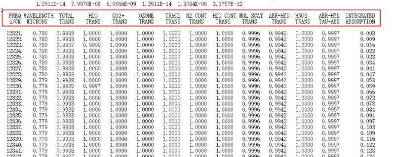 最近用modtran软件计算大气透过率,数值结果文件第六个之后的表头不理解都是什么意思,不知道有没有相关学科的大神求解释啊,谢谢谢 发自小木虫Android客户端 |