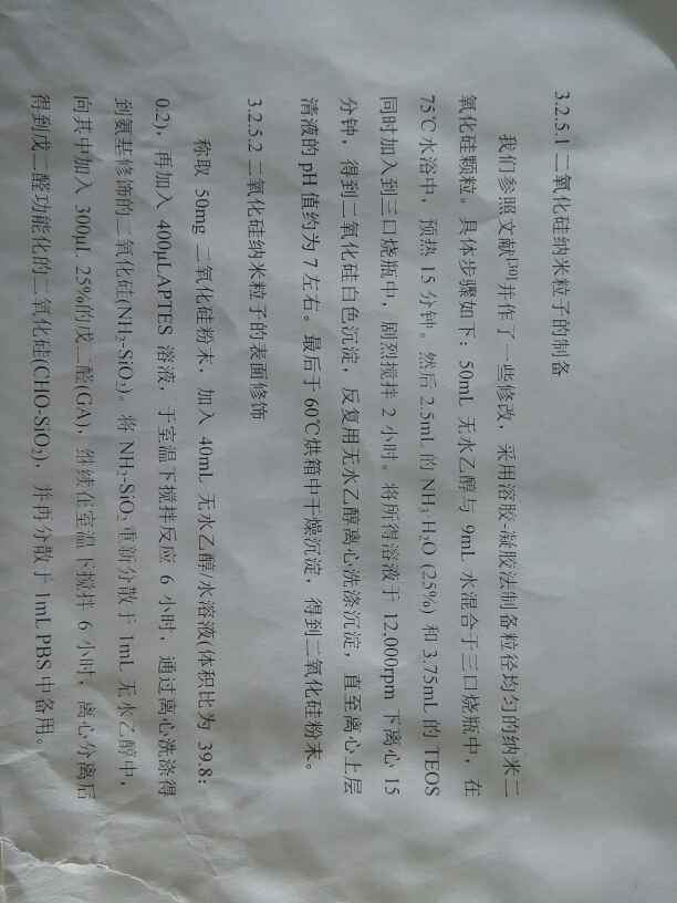 老师你好,我在做二氧化硅纳米粒子制备,但是做了好久都没成功,也不知道问题出在哪里,实验步奏是,50毫升无水乙醇以及9毫升水,75度水浴15分钟,然后加入2.5毫升氨水,2.75毫升teso,水浴锅下搅拌两小时,然后12000转每分钟离心15分钟,但是没任何沉淀物啊! 发自小木虫Android客户端 |