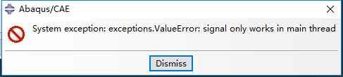 错误及参数如图所示,ABAQUS计算提交工作时显示错误:System exception:exceptions.ValueError:signal only works in main thread.尝试了以下各种方法,仍未解决:①改变job参数,之前采用的是默认,一直没有出问题,现在还是默认,出问题了,改参数也还是那样。②重启程序,重启电脑也无济于事。③重新构建模型,重新计算,包括重新提交之前已成功的工作,然而都无法运行了。各位大神,求指导! 发自小木虫Android客户端 |