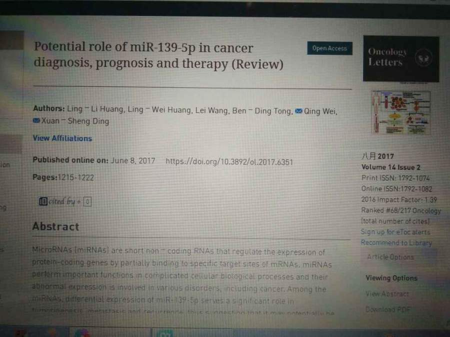 求助oncology letters,2017年 volume 14, issue 2这期的杂志封面和目录