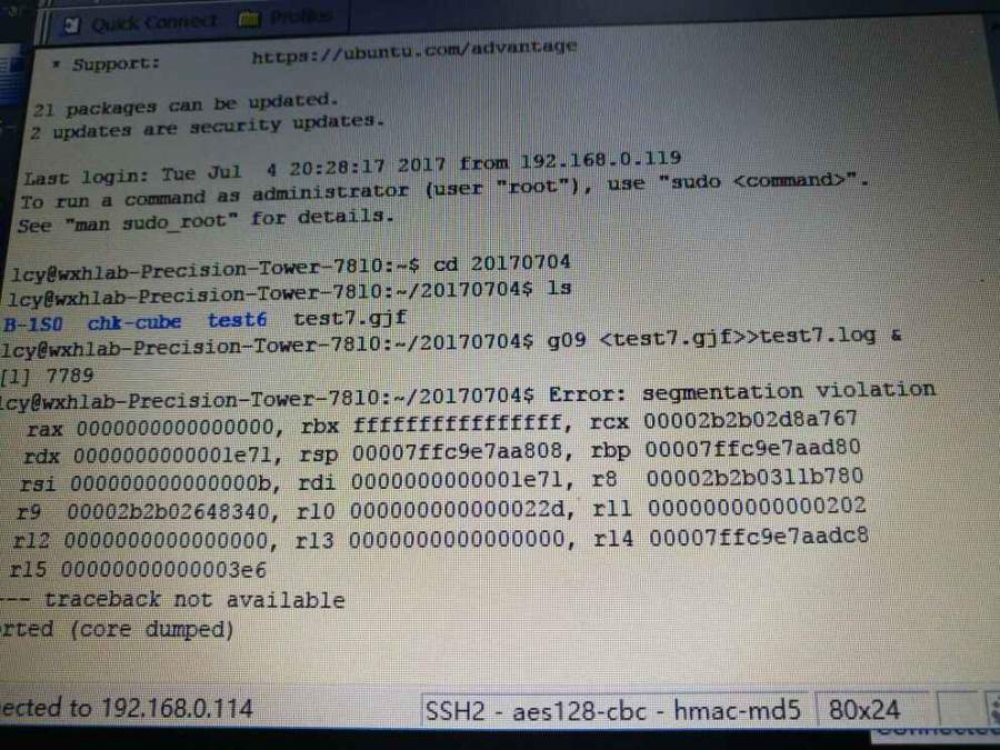 每次都是这样的错误,就是害怕是软件安装的问题,昨天提交成功过一次作业,也是不正常结束,后面就一直这样,根本提交不了End of file reading connectivity. Error termination via Lnk1e in /home/lcy/gaussian/g09/l101.exe at Wed Jul 5 09:01:32 2017. Job cpu time: 0 days 0 hours 0 minutes 1.2 seconds. File lengths (MBytes): RWF= 5 Int= 0 D2E= 0 Chk= 1 Scr= 1 发自小木虫Android客户端 |