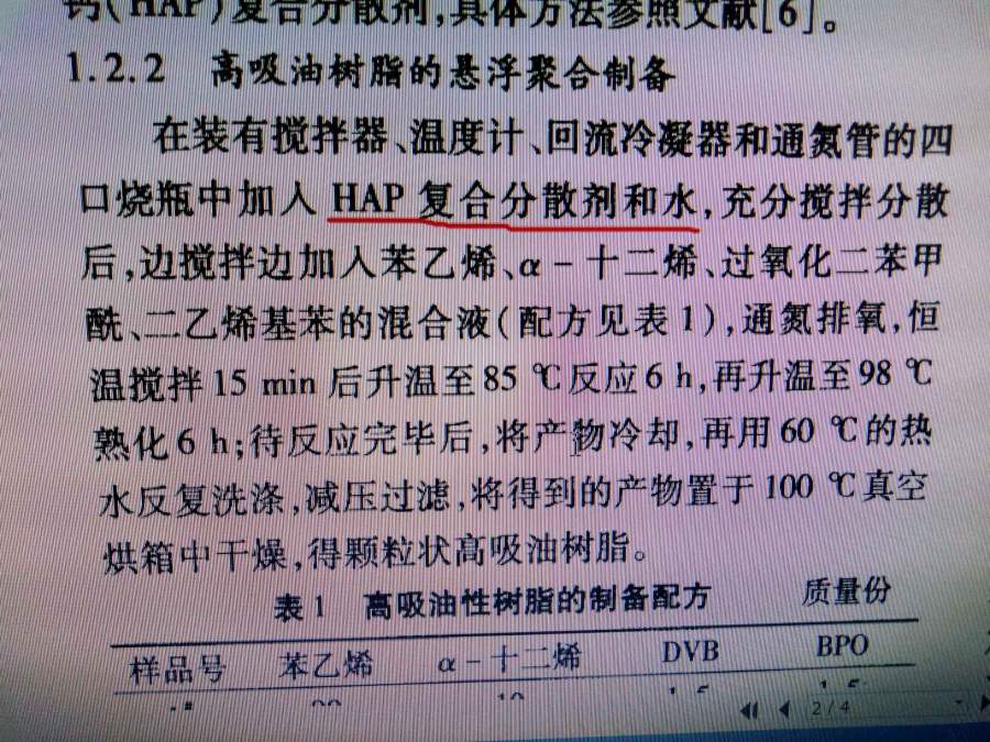 按照文献里面的方法想制一种烯烃类的吸油树脂,选的是苯乙烯和十二烯为原料,制得结果如图,感觉都是结晶粉末状,扔到油里感觉都不溶胀啊,这是为啥?搞不明白,文献和结果都如图所示,有人可以指导一二吗? 发自小木虫Android客户端 |