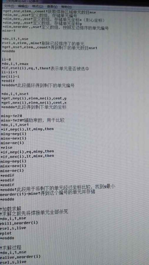用生死单元做焊接过程模拟,找了一段焊接单元排序的程序,但是不起作用,请大神看下问题出在哪了!感谢