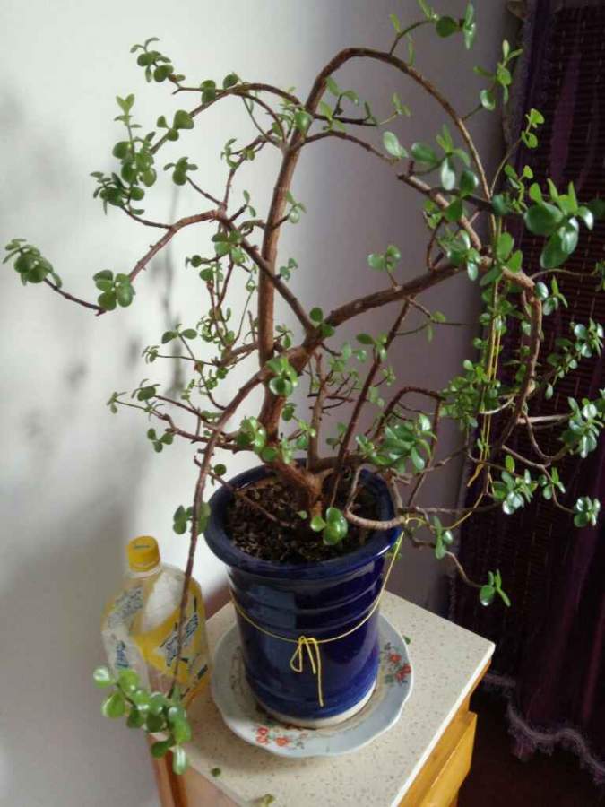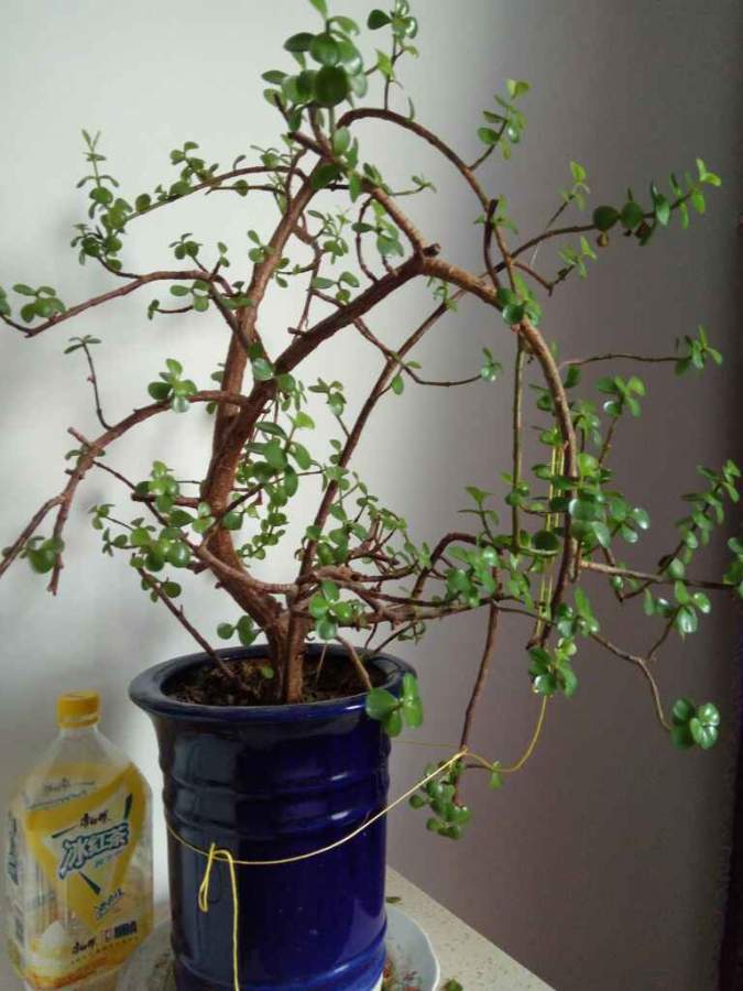 ortulacaria afra),即:金枝玉叶,为马齿苋科马齿苋树属多年生常绿肉质灌木,茎肉质,紫褐色至浅褐色,分枝近水平,新枝在阳光充足的条件下呈紫红色,若光照不足,则为绿色。