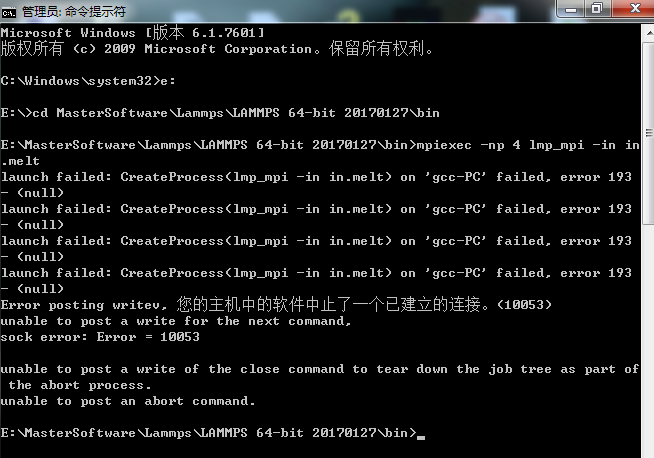lammps运行报错:error 193 和 error 10053